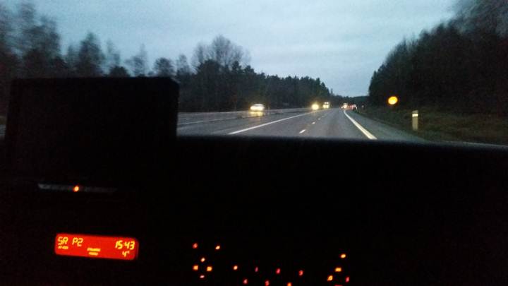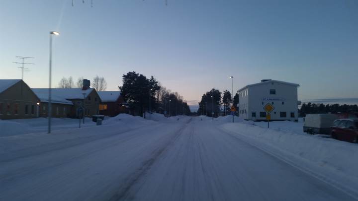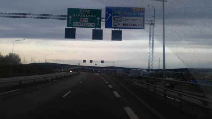 Appena buio (circa le 15.30-16...)siamo andati a mangiare qualcosa a Kiruna al Burger King, in seguito acquisto di salmone fresco al supermercato e via verso Umea per la sosta notturna nel parcheggio della stazione.