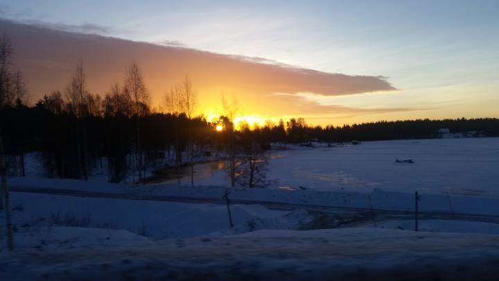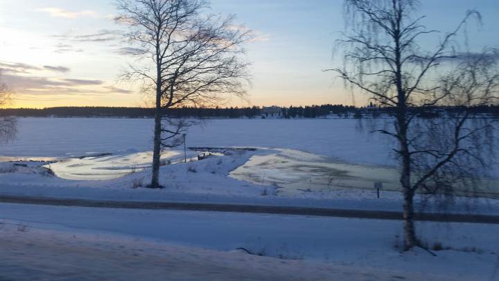 Dopo Sundsvall finalmente qualche lago "quasi ghiacciato" e paesaggio incantato!! Ma ancora niente neve!
