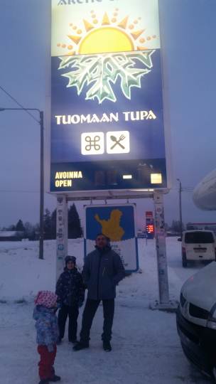 Incontriamo il cartello del Circolo Polare e le indicazioni per Rovaniemi (ma ci siamo stati lo scorso anno in aereo e per questa volta passiamo oltre).