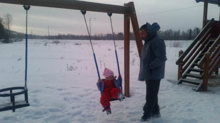 Ci rendiamo conto che hanno appena chiuso anche la strada per Alta prima di Skaidi... ok momento di panico... non si può andare né avanti né indietro... l'unica soluzione è tornare a Skaidi ed attendere. Continua a nevicare e le previsioni non promettono niente di buono. Il problema è che sono le 12 e tra un pò scende la notte, nel paese (4 case, un hotel, un distributore e un piccolo emporio) è tutto chiuso e passare l'intera giornata nel camper non ci sembra una buona idea. Intanto ci facciamo una passeggiata prima che diventi ancora più buio, i bambini sono contenti di giocare in mezzo alla neve. Non sappiamo cosa fare, se aspettare per andare verso la nostra meta o verso Alta, così decidiamo per attendere l'apertura della sbarra per Honningsvag, siamo qui ad una manciata di km... sarebbe un peccato. Nel giro di poco cambiamo subito idea, ci troviamo in mezzo ad una breve bufera di neve, vediamo che lo spazzaneve di Skaidi che sta partendo (ma non apre i passi chiusi, è solo per il paese) e facciamo un pò di domande all'autista. Ci consiglia di tornare ad Alta perché le previsioni non migliorano fino al 3/01 e nel frattempo c'è la KOLONNE per Alta! Dunque la strada potrebbe riaprire a breve. Ci mettiamo in colonna e aspettiamo...!