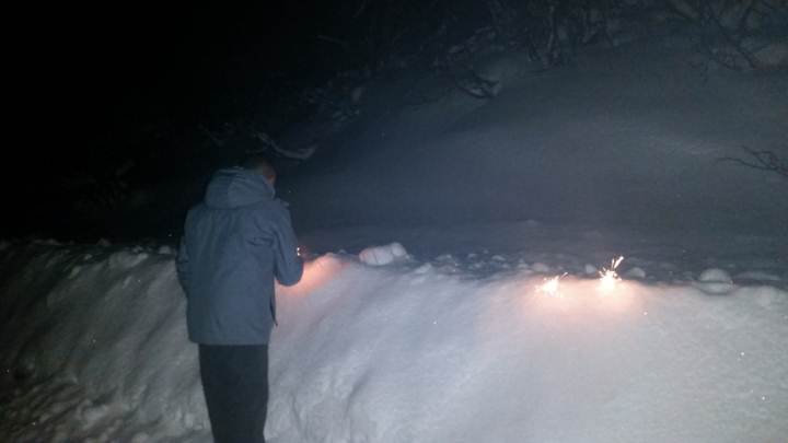 Ad Alta sosta cena e decisione se continuare per Skaidi aspettando la mezzanotte... e altra Aurora Boreale mentre cerchiamo di accendere le "scintilline" in mezzo alla neve per festeggiare il nuovo anno!