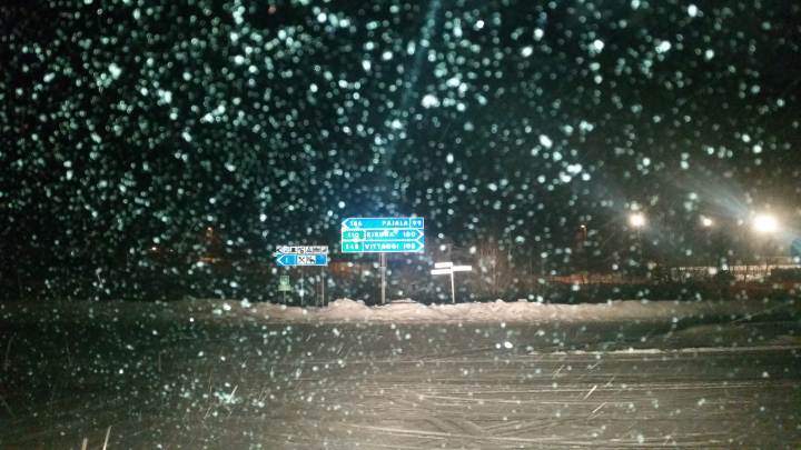 Comincia a nevicare come si deve e arrivati a Skaidi ci fermiamo al parcheggio dell'unico distributore per la notte.