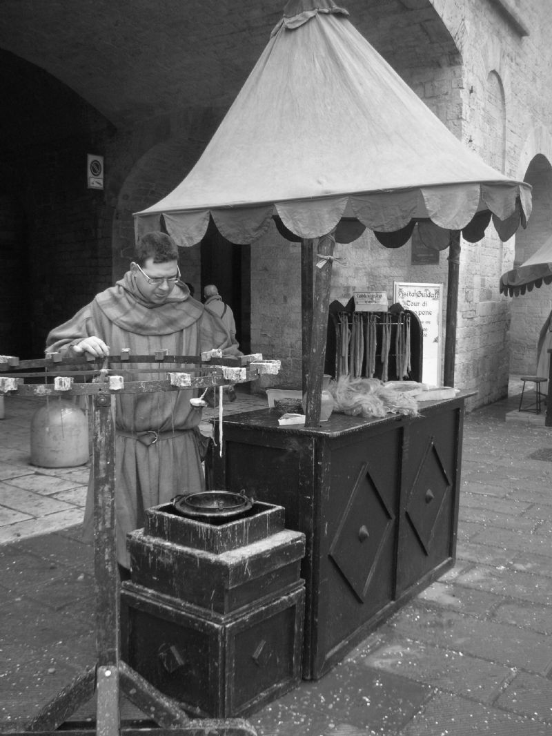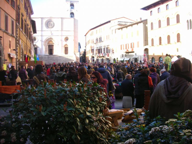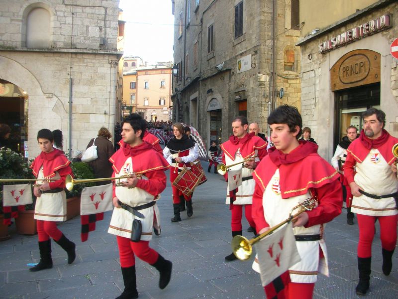 Ritorniamo a Todi per percorrere piacevolmente una esperienza unica al mondo,Il Carnevale Medioevale, coniugato in modo esemplare con i vicoli storici di questa città, dove le botteghe artigiane aprono ancora le porte per esporre la loro mercanzia.La manifestazione, giunta alla sua sesta edizione è la prima tra quelle medioevali,un grande teatro popolare ambientato nel 1200.Scene medioevali,mangiafuoco e trampolieri,giullari e cantastorie, arcieri e cavalieri, sbandieratori e falconieri,hanno dato vita ad uno spettacolo di "ALTRI TEMPI" oltre 400 figuranti in costume con sfilata all'imbrunire della domenica alle luce delle fiaccole e con la deposizione dei ceri davanti alla chiesa di San. Fortunato .