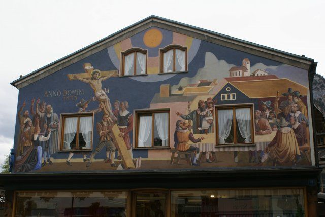 Grazioso paesino a poca distanza dal precedente. E’ caratterizzato dai muri delle case affrescati e dall’artigianato del legno. Ogni dieci anni (il prossimo sarà il 2010) da maggio a ottobre si svolgono una serie di rappresentazioni sacre della passione di Cristo: PASSIONSSPIELE. I biglietti sono introvabili e venduti da un ufficio appositamente dedicato all’evento. Tutto il paese è coinvolto; noi per strada abbiamo potuto verificare le prove di alcuni ragazzi per lo spettacolo.