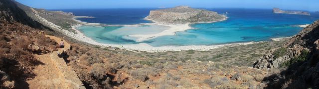 Sbarcati a Creta e precisamente a Kissmos, anche per ambientarci, siamo andati alla ricerca del camping Mithima che si trova appena fuori della cittadina sulla strada verso Chania (La Canea veneziana). Il camping è ottimo e si affaccia su una bella spiaggia. E’ dotato di tutti i servizi (due persone + camper + elettricità € 20). Scesa la vespa dal camper (ma ci si può andare, e volendo dormire, direttamente con il camper percorrendo una strada sterrata lunga una decina di chilometri) siamo andati ad ammirare una delle prime meraviglie della natura di Creta: Balos. Questa spiaggia varrebbe da sola il viaggio. I colori sono da cartolina, il vento ti porta via e le foto si sprecano: cominciamo bene! Tornando siamo passati per la spiaggia di Falasarna (bella ma non all’altezza della precedente!) e abbiamo visitato il paesetto di Kissamos cenando benissimo nella taverna della piazza principale con nove euro a testa. Poi la sera siamo tornati al camping e poi subito a nanna dormendo benissimo con un bel vento fresco proveniente dal mare.