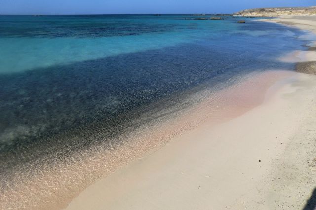 La mattina decidiamo di trasferirci per andare a visitare la famosa spiaggia di Elafonisi. La strada è piena di curve, e questo si poteva anche immaginare, ma quello che non ci si aspetta è che i Cretesi fermano le loro auto (quasi tutti dei pick-up…….) in mezzo alla strada esattamente di fronte al luogo dove devono andare. La conseguenza è che ogni paese è un susseguirsi di ingorghi! (Dovremo farci l’abitudine perchè lo stesso problema si ripeterà per tutta Creta.....). Lungo la strada ci fermiamo un’oretta per visitare il primo monastero del nostro viaggio: Moni Christoskalitissa (nulla di interessante da segnalare ..…). Arrivati invece a Elafonisi, letteralmente, ci luccicano gli occhi! Ci troviamo all’improvviso di fronte ad uno spettacolo della natura! Senza dilungarmi posso dire che anche questa spiaggia meriterebbe da sola il viaggio! Decidiamo di trascorrere qui due notti nell’enorme parcheggio gratuito dove già sostano degli altri camperisti (la sera usciamo per vedere le stelle e ci sembra di poter toccare la Via Lattea con le mani!).