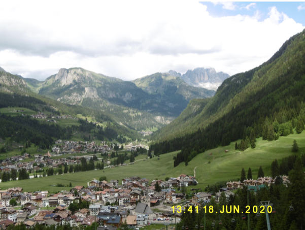 Il tempo è migliorato, prendiamo a La Villa il bus che ferma in centro del paese, è vuoto e con sorpresa il conducente ci informa che causa nota situazione il trasporto pubblico locale è gratuito sino all’indomani. Scendiamo a Corvara davanti a Kostner e prendiamo il sentiero del Borest che conduce sin oltre Colfosco. Lungo il percorso un articolato percorso salute, non incontriamo nessuno, passiamo a lato del camping Colfosco, una decina di mezzi, pranziamo in uno dei pochi posti aperti a Colfosco. Al ritorno decidiamo di farla tutta a piedi, ridiscesa per il Borest e quindi a Corvara (5a foto) prendiamo il bel sentiero che corre lungo fiume sino a La Villa, percorsi in tutto a piedi 14 km, non male!