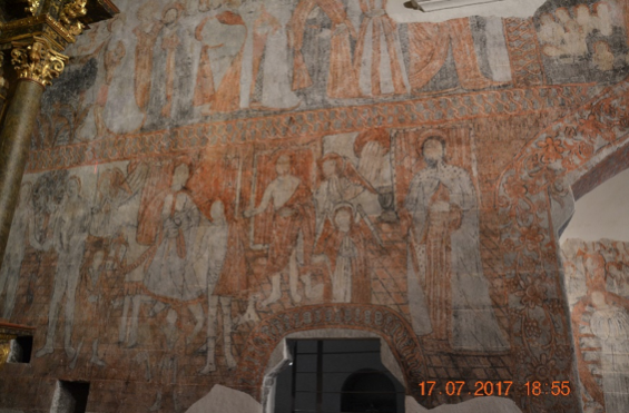 iglesia de san Esteban, del sedicesimo secolo, dove incontriamo una vecchietta che ci illustra gli affreschi policromi e l’interessante storia della chiesa.