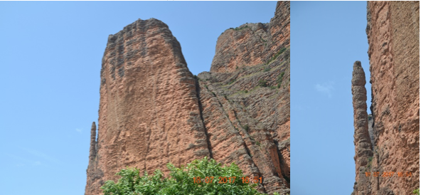 Los Mallos(i birilli) de Riglos: strane formazioni rocciose di colore rossastro a forma di birillo, paesaggio da non perdere. Raggiungiamo