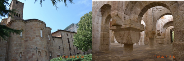 Poi arrivo a Ripoll, il paese ci delude. Il complesso monastico, molto rimaneggiato, doveva essere grandioso, stupefacente il ricchissimo portale romanico, protetto da un porticato chiuso da brutte vetrate con telai in alluminio! All’interno, bel chiostro romanico a due piani. Terminata la visita, ci dirigiamo a