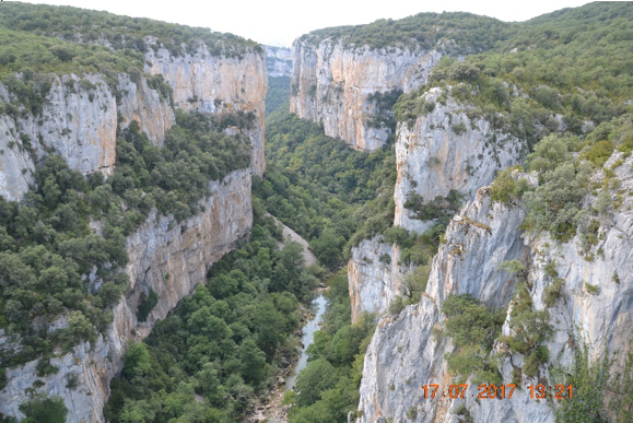 Hoz de Arbajun, dove dalla terrazza ammiriamo la bellezza del posto: sul fiume Irati volteggiano rapaci (aquile, avvoltoi e Grifoni) tra le alte pareti a picco.