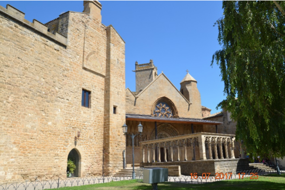 Olite, bella cittadina, con grandioso castello, molto restaurato, palazzo dei re di Navarra, Chiesa di Santa María la Real, con strano chiostro/protiro antistante la facciata, molto bella.