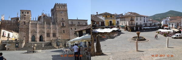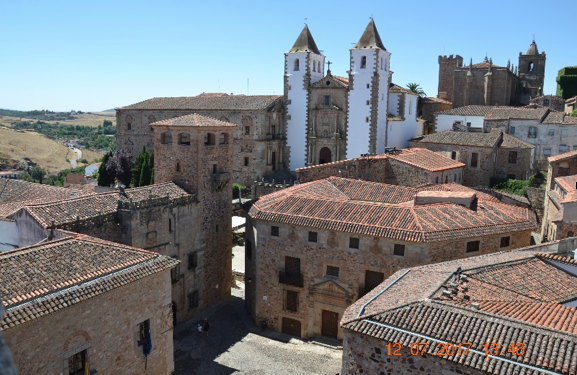 Caceres, con arrivo in area di sosta camper e visita alla città monumentale, patrimonio dell’Unesco. Passando per la bella plaza major, entriamo nella cittadella medievale, perfettamente conservata, calandoci in un’atmosfera senza tempo, con notevoli chiese ed edifici, tutti costruiti con la medesima pietra color ocra dorato. Dopo la visita, per il pranzo ci fermiamo in plaza major, scegliendo il ristorante munito di ventilatori che vaporizzano acqua, per rinfrescare i clienti, visto il caldo africano.