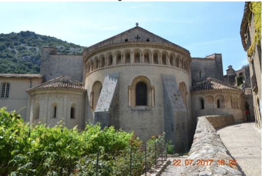 Saint-Guilhem-le-Désert, caratteristico borgo dalle case in sasso, su di un torrente. Mangiamo in una trattoria sul torrente (Menu a volontà), poi Percorriamo la stretta stradina che attraversa il borgo ed arriviamo alle imponenti absidi della chiesa romanica dell’undicesimo secolo, facente parte del Monastero di Gelona. Per poi raggiungere la bella ed alberata piazza su cui prospetta la facciata della chiesa. Il tutto dominato dalle montagne circostanti.