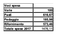 Riporto una tabella con le voci di spesa delle carte di credito, cui vanno aggiunte le spese in contante, di cui non abbiamo tenuto un conto preciso, ma quantificabili in almeno altri 500,00€.