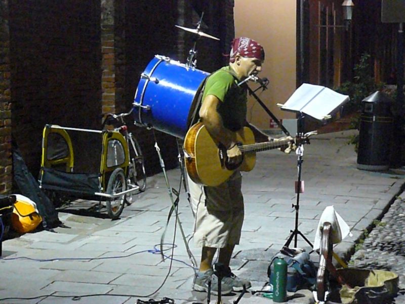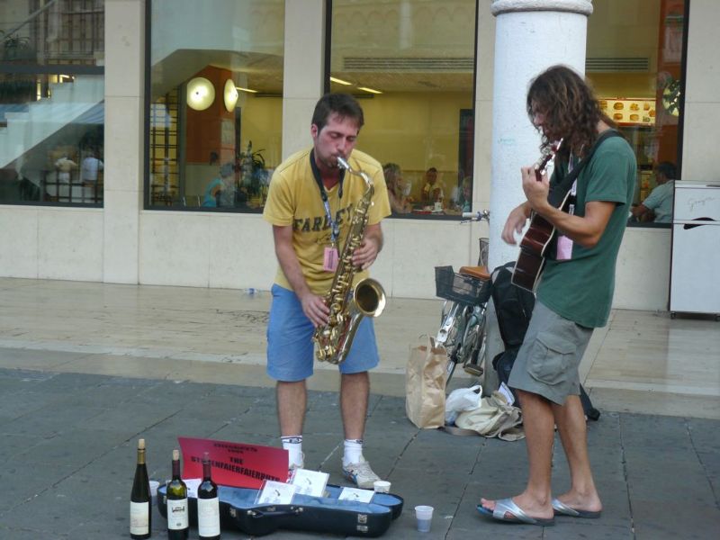 Come da molti anni, anche questa volta non vogliamo mancare all'appuntamento della rassegna Internazionale del Musicista di Strada a Ferrara, città affascinante che evoca in noi ricordi dei primi anni di fidanzamento, quando, tra le vie della città, rincorrevamo le note musicali dei violini e i colori dei palloncini che assumevano forme sempre diverse. Ricordo che molti bambini si mettevano in fila per avere il loro animale preferito del colore scelto per l'occasione. I loro occhi brillavano per l'eccitazione e la gioia di tenere tra le mani quella creatura delicata e meravigliosa nata dal soffio dell'artista. Ora anche gli adulti rincorrono quella magia, lasciandosi rapire dalle note musicali delle canzoni che in ogni angolo della città richiamano un folto gruppo di appassionati e curiosi. Quest'anno la Croazia era il paese ospite, ma molti altri paesi hanno contribuito a rendere unica questa manifestazione. Molto coinvolgente è stata l'esibizione della " Fred Menendez Band" (musica strumentale del Brasile) che faceva ballare gli spettatori con le note più famose di Santana e anche il gruppo "Buffalo Bill & His Bavarian Hunters" (Germania - Usa), musica contry molto bella con i simpaticissimi componenti che si scatenavano suonando i loro strumenti. E' stato bello anche rievocare le vecchie canzoni italiane di Fabrizio De Andrè ed Edoardo Bennato sullo sfondo del Castello Estense. A cena abbiamo mangiato cappellacci di zucca al ragù in uno dei locali che per l'occasione proponevano piatti tipici a prezzi concorrenziali.