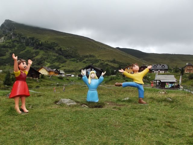 Nuvoloso 19 gradi. Ore 9 paghiamo il campeggio (3 giorni 135 €) facciamo camper service e via! Destinazione Heidi alm al Falkert see 42 km. 10.30 arrivo a destinazione dopo aver percorso una strada veramente ripida con il camper. Ingresso 18 € per tutta la famiglia ma è davvero un bel posto!