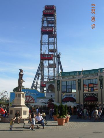 Pedaliamo e pedaliamo arriviamo al Prater : il famoso luna park storico della capitale. Camminiamo a testa in su per vedere le giostre pericolose che ci sono…..