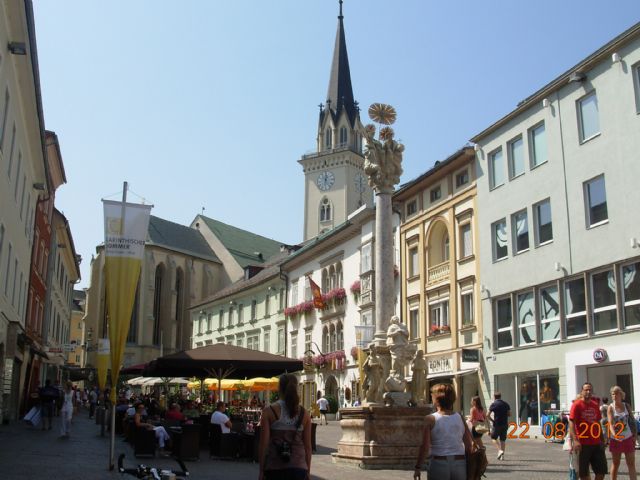 E’ arrivato il gran giorno del rientro in Italia…. Siamo tutti un po’ tristi….. Nonostante tutto si paga il campeggio (133€) e si parte. Per noi è inconcepibile non fare soste così parcheggiamo a Villach e scendiamo in bici a visitare il centro (alla partenza l’avevamo saltato). La città è carina e piena di turisti soprattutto Italiani: siamo sul confine dopotutto… Acquistiamo la calamita per il frigo e si riparte dopo pranzo. Pieno di gasolio 34€. Ci mancherà questo prezzo del carburante… Ore 20 arriviamo a Montegrotto terme al Campeggio Sporting center che con piscina termale. Ceniamo in pizzeria con una vera pizza italiana finalmente! 33€.