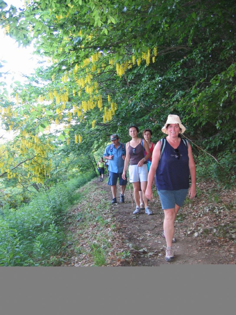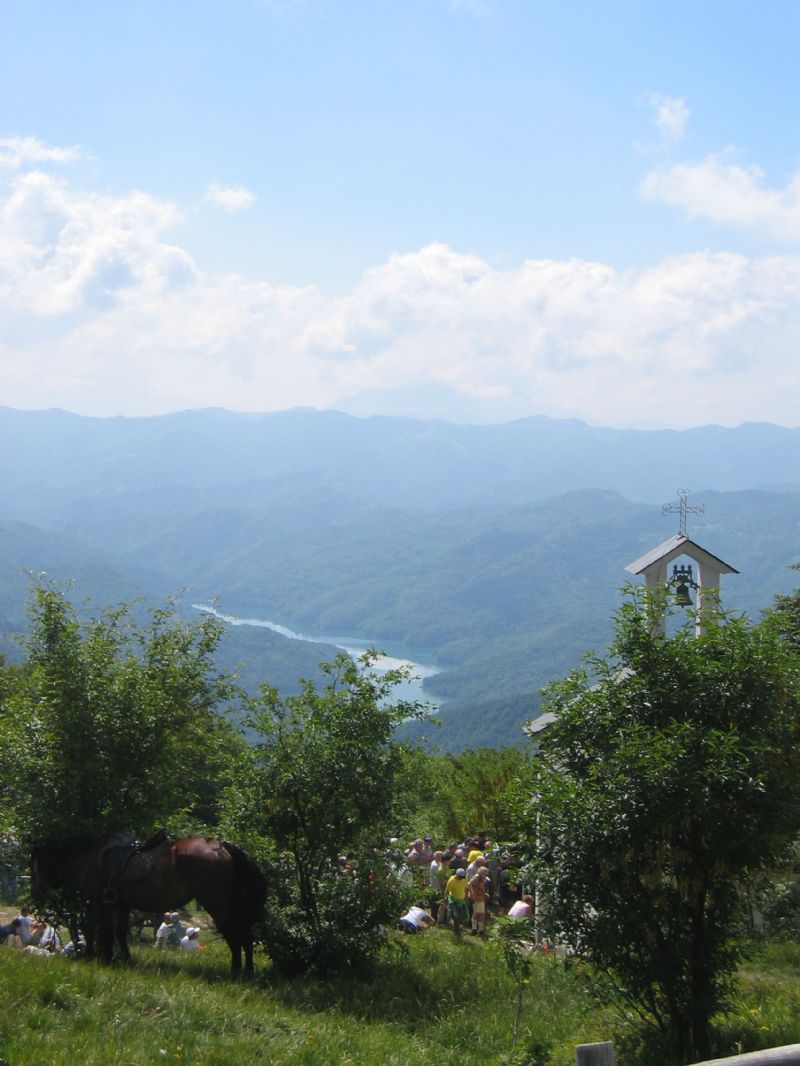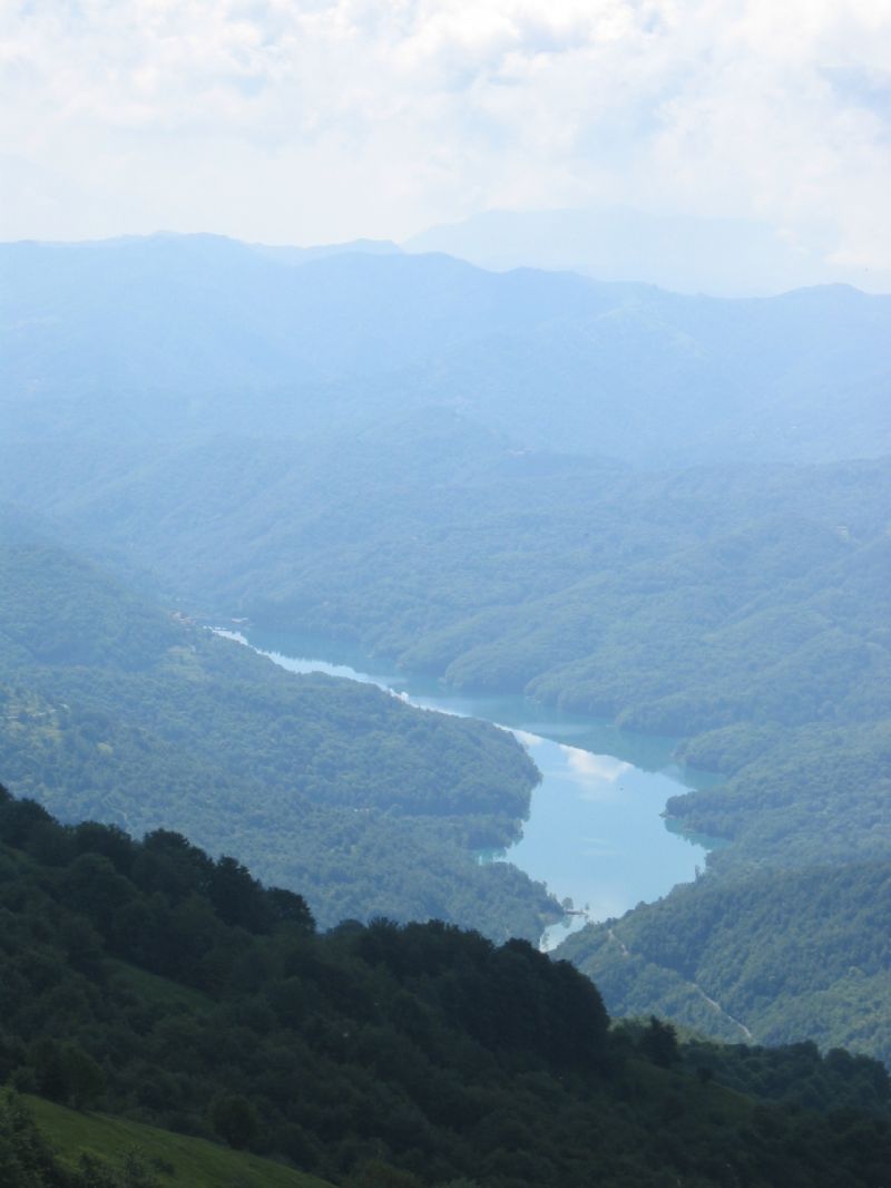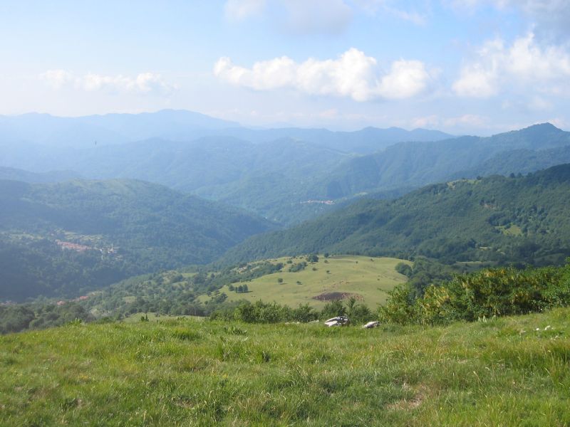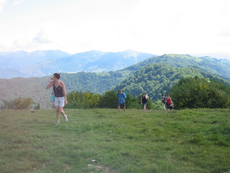 Il giorno successivo super trekking fino al monte Antola, tantissima gente. Ci sono gite a cavallo e tanti ciclisti in mountain bike, mi sembrano corraggiosissimi, infatti ad una discesa assisto ad un volo spettacolare. Si passa in mezzo a meravigliosi boschi di maggiociondoli e vista su alpeggi e sul lago di Brugneto, Arrivo al nuovo rifugio del''Antola ( interessante la storia dei precedenti rifugi ormai rottamati). Il rifugio è moderno ed ecocompatibile, solarium mozzafiato. Via verso Torriglia attraverso faggete e nubi basse, atmosfera romantica e un po' da "Signore degli anelli" o " Mastino dei Baskerville".