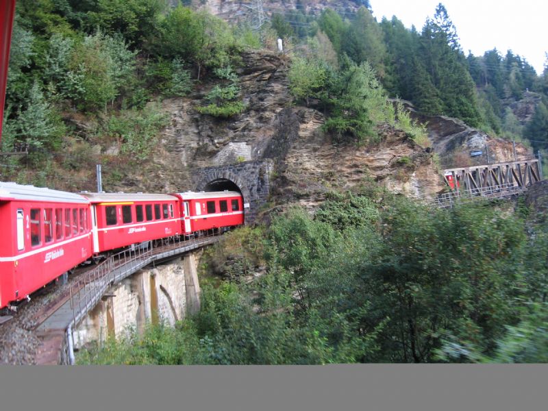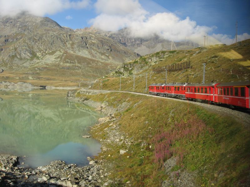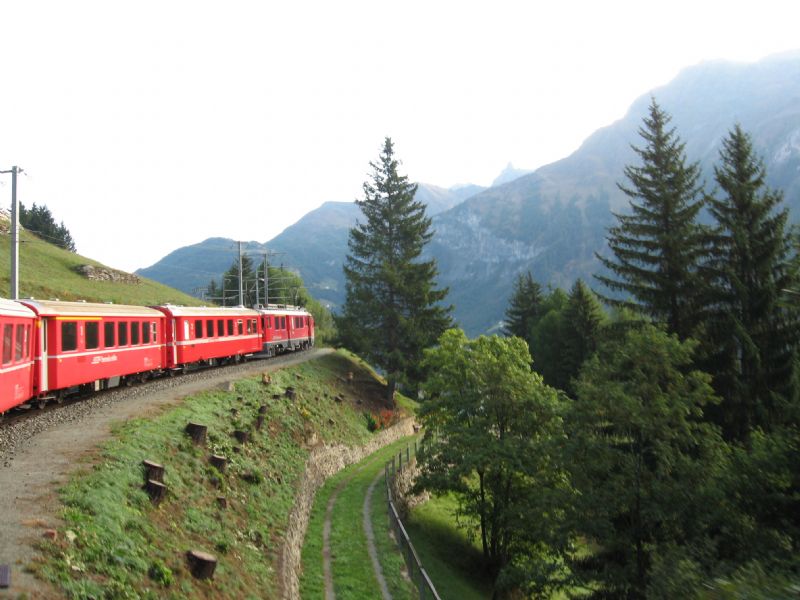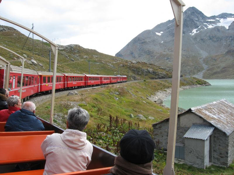 Domenica mattina ore 7.30 tutto il gruppo di www.viaggiericordi.com si ritrova alla stazione di Tirano sul trenino rosso. Si parte! Tutto il percorso, due ore e mezza circa, è un panorama dopo l'altro. Siamo tutti ai finestrini ad ammirare il lago, la montagna, la cascata, il bosco, il grande ghiacciaio, la ferrovia che come un serpente striscia salendo e scendendo i pendii. Il viaggio è veramente entusiasmante, suggerisco l’esperienza . All’arrivo, la passeggiata intorno al lago di St. Moritz è piacevole come pure la visita in centro ma, siamo tutti “gasati” pensando al ritorno sul trenino rosso.