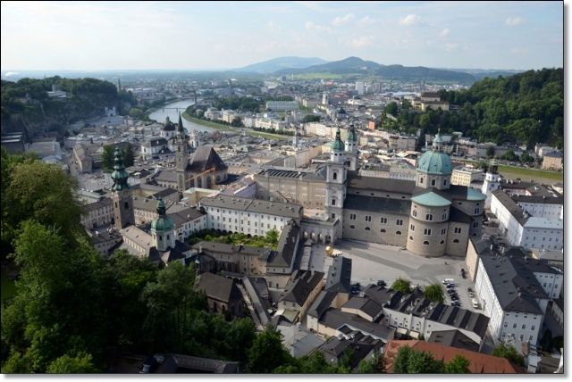 Le previsioni meteo annunciano tempo variabile ed il cielo non promette nulla di buono. L'unico dubbio riguarda ovviamente il piccolo Matteo e la difficoltà di coprire la carrozzina durante un eventuale temporale, ma non ci lasciamo fermare e decidiamo comunque di raggiungere il centro città. Acquistiamo, presso la reception del campeggio, la Salisburg Card (€ 65 due adulti ed un bimbo, il più piccolo gratis) che consente di spostarsi liberamente sui mezzi pubblici e visitare molti palazzi e musei. Fuori dal campeggio prendiamo il bus 23A ed in pochi minuti siamo in centro dove visitiamo la casa di Mozart e passeggiamo tra splendidi palazzi fino all'ora di pranzo. Nel pomeriggio il meteo volge al bello e la città ha un altro aspetto. Saliamo con la funicolare alla fortezza medievale dove, oltre a visitarne gli interni, godiamo di un panorama unico sulla città. Sono le 20.00 circa ed il cielo è di un azzurro intenso, ma siamo decisamente stanchi (spingere la carrozzina sulle vie acciottolate del centro è tutt'altro che piacevole) e così rientriamo al camper, contenti comunque della bella visita e di come il piccolo Matteo stia reagendo al viaggio.
