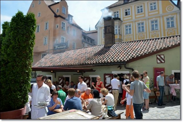 La notte trascorre in assoluta tranquillità, ma ci rendiamo conto che il mezzo lì non può stare durante il giorno e quindi ci spostiamo di qualche centinaio di metri, presso un P+R (che avevo notato la sera prima tra i tanti giri, ma non so perché, ignorato completamente …) dove con enorme sorpresa troviamo una ventina di camper! Si tratta infatti di un parcheggio molto grande ed una zona di questo è destinata ai VR:il P+R è il Unter Wohrd am Winterhafen, in wordstrasse 62 (N49°01.249 E012°06.690). Nuovamente sulle rive del Danubio, oltrepassiamo un ponte e siamo in centro dove subito apprezziamo la bellezza di piazze e cattedrali, tra cui la più famosa di San Pietro. Passiamo sul famoso Steinerne Brücke (ponte di pietra), edificato intorno al 1200 e ritenuto dai superstiziosi opera del diavolo e subito accanto troviamo la famosa Wurstküche, un antico locale dove vengono cotte alla griglia buonissime salsicce di maiale che, a detta degli abitanti, sarebbero le più buone del mondo! Che questo sia vero o meno non lo sapremo mai, di sicuro è però molto caratteristico: di fatto si tratta di una "birreria" all'aperto dove sotto affollatissimi ombrelloni ci sono panche e tavoli perennemente affollati, il tutto pervaso dal fumo del camino che emana un buonissimo odore in tutta la zona. Attendiamo che si liberino tre posti, quindi riusciamo a sederci per un ottimo pranzo (con buonissima birra fresca) in piacevole compagnia … Nel pomeriggio lasciamo Regensburg e dirigiamo ad Amberg, che raggiungiamo in un'oretta circa. Questa volta le coordinate della guida (confermate anche da Bordatlas) si rivelano esatte e raggiungiamo l'AA riservata ai camper, ma ennesima sorpresa, una catena ne impedisce l'ingresso. Ci sono una decina di mezzi (e se parcheggiati meglio ce ne starebbero ancora due o tre) che sembrano quasi "stanziali". Un signore, per altro molto cortese (proprietario del primo mezzo vicino all'ingresso), mi conferma che lì posto non ce n'è e che in città non ci sono altre sistemazioni. Mi indica un luogo tranquillo, vicino ad un supermercato Netto, comunque fuori città di alcuni chilometri. La chiusura dell'area non mi convince affatto e, benché il posto per noi ci sarebbe comunque, decido di non approfondire e così accetto di buon grado le indicazioni e me ne vado via. Proviamo a seguire le indicazioni della guida camper stop, ma ancora una volta si rivelano dei "buchi nell'acqua" e così non ci mettiamo molto per decidere che forse è meglio dirigere altrove. Forse ci perdiamo una bella visita, ma la prossima tappa è Norimberga e decidiamo di dedicargli del tempo in più rispetto al previsto. Verso le 18.00 entriamo nel campeggio della città, il Knaus Campingpark: non è molto grande, ma ci sono i servizi essenziali con bagni molto puliti (e musica country all'interno). Possiamo così goderci una bella serata fuori dal camper prima di cena e l'indispensabile doccia prima del sonno …