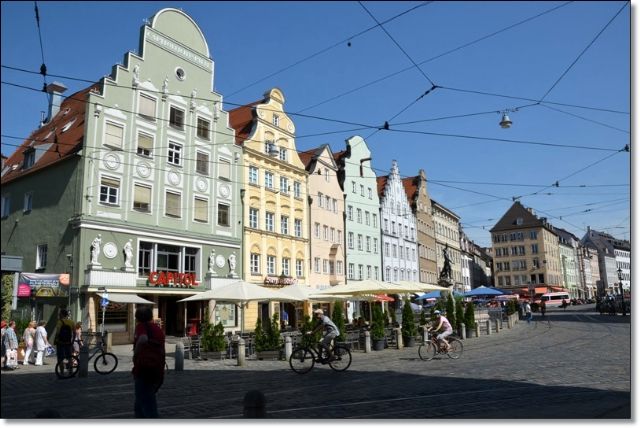 Lasciamo con tutta calma il camping e ci spostiamo ad Augsburg, accompagnati anche oggi da un caldo torrido che supera i trenta gradi. Prima di giungere in città ci fermiamo in un Aldi per fare spesa e poi, verso le 13,30 troviamo (dopo aver chiesto indicazioni ad un ragazzo del luogo) un P+R, per fortuna con alberi secolari che creano ampie zone d'ombra. Il P+R si chiama Sud an der Sportanlage, in IISungstrasse 11 (N48°20.411 E010°54.573). Dopo pranzo ci spostiamo (col tram numero 2) in centro e passeggiamo lungo Maximilianstrasse, ammirando i bei palazzi edificati tra il '500 ed il '700 e perfettamente conservati. Fondata nel 15 a.c. dall'imperatore Augusto, è la terza città più grande della Baviera (dopo Monaco e Norimberga) ed è inserita nel percorso della famosa strada romantica: visitiamo Rathausplatz, piazza del municipio dove si trova anche la chiesa di St. Peter con la sua torre alta 70 mt, quindi la fontana Augustusbrunnen realizzata nel 1500 circa proprio in onore del fondatore della città. Una bibita fresca all'ombra di un gazebo e prima di cena rientriamo al camper, quindi al vicinissimo Camping Bella Augusta: anche in questo caso si tratta di una struttura "essenziale", ma troviamo comunque il necessario per rimetterci in sesto prima di riprendere il viaggio.