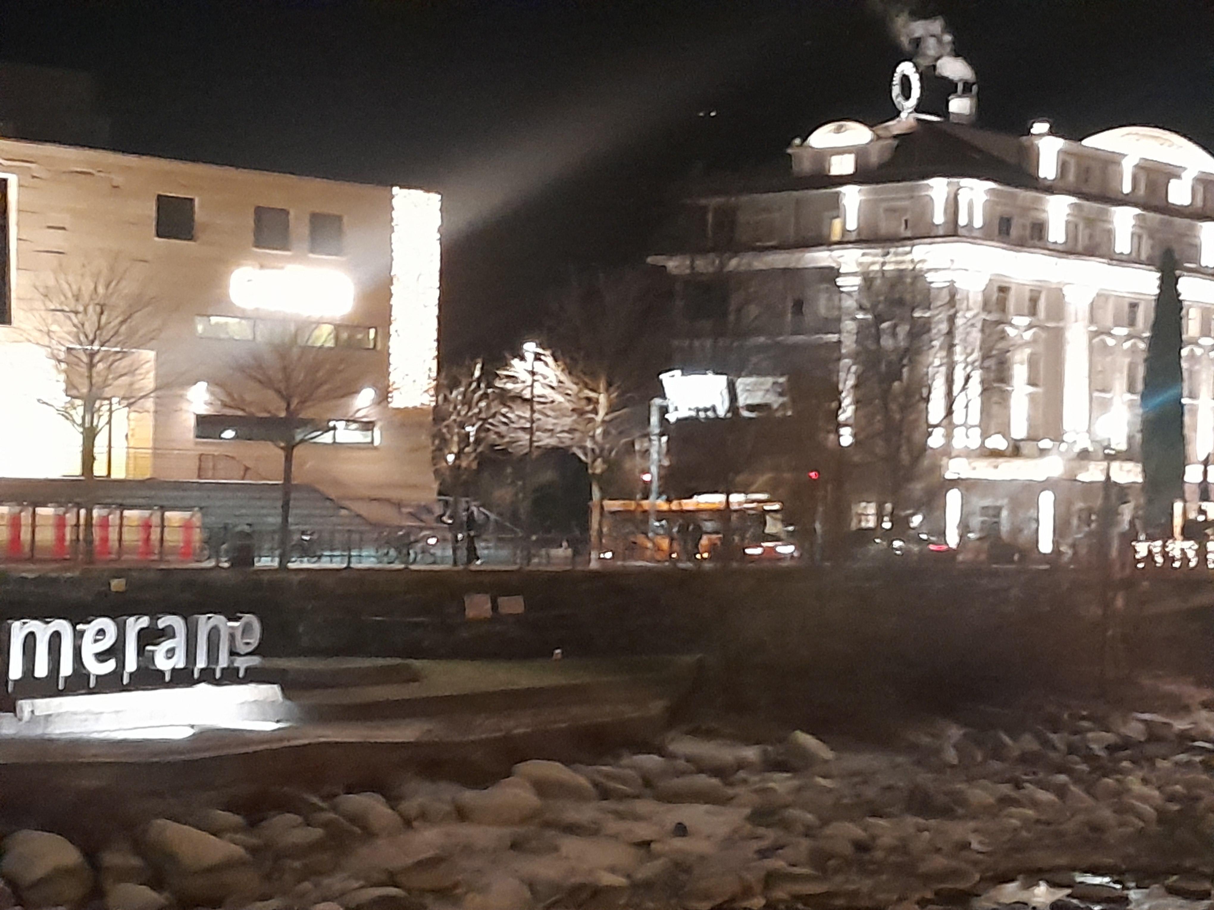 Partenza alle 09:30, sosta per pranzo presso area servizio Secchia, arrivo a Merano alle 17:30 dopo circa 685 km, sistemazione camper in via Caserme, 10 minuti a piedi per il lungofiume e giro per i mercatini.