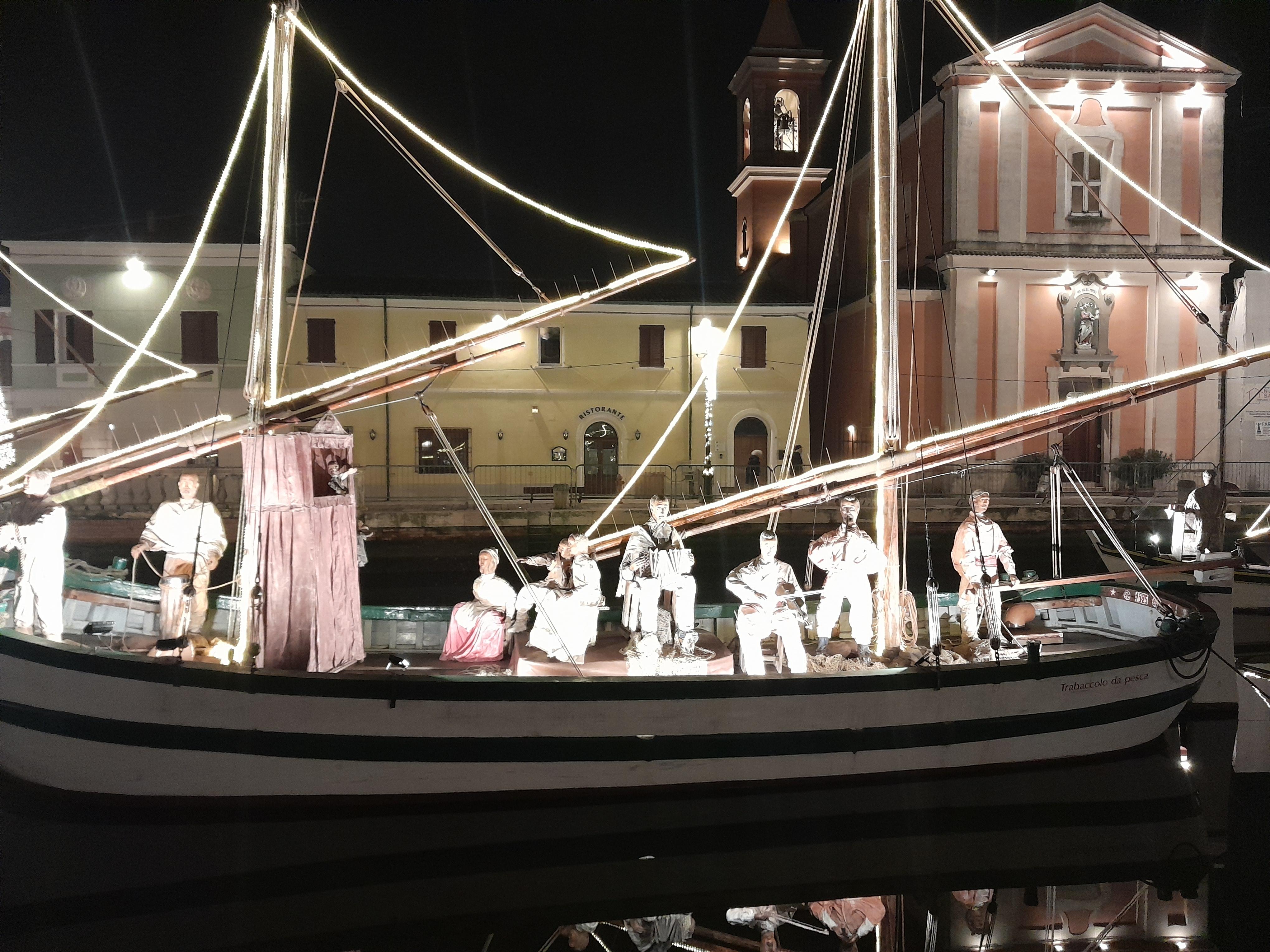 Partiamo per le 10:00 dopo aver effettuato i vari servizi di carico e scarico partiamo per Cesenatico, circa 250 km con sosta nel parcheggio adiacente l’A.A. comunale e con una breve passeggiata visitiamo il gran canale con il presepe sulle navi, della marineria.