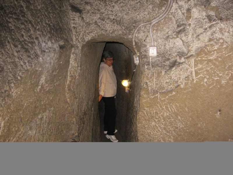 Passeggiando in via Tribunali, arriviamo all’Associazione Napoli Sotteranea e ci uniamo al gruppo alla scoperta del sottosuolo napoletano. Percorriamo parte della rete di cunicoli e ampie cavità cisterne che attraversano in lungo e in largo la città, la luce è fioca o inesistente nei stretti passaggi dove utilizziamo le candele per illuminare il ns. cammino. Dopo un ora e trenta circa risaliamo in superficie e ci accorgiamo che il tempo è cambiato e sta scendendo una leggera pioggia. Non disperiamo e proseguiamo la nostra passeggiata verso l’imponente fortezza del Castello Nuovo o meglio Maschio Angioino.