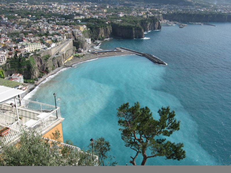 Sostiamo al camping Seiano spiaggia a Vico Equense, il campeggio è piccolo, molto alberato e tranquillo a pochi metri dal mare. Dopo qualche difficoltà nella sistemazione dei camper inforchiamo lo scooter e arriviamo a Sorrento per una passeggiata in centro.