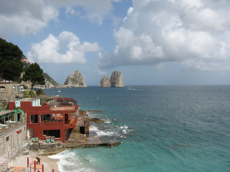 La combinazione tra terra cielo e mare, il verde della vegetazione sulle ripide pareti rocciose rendono questa isola incantevole. Saliamo sino al centro dell’isola, alla nota piazzetta per poi spostarci con il piccolo bus sino Anacapri, purtroppo la grotta azzurra è chiusa per il mare troppo agitato e a Marina Piccola per ammirare i Faraglioni.