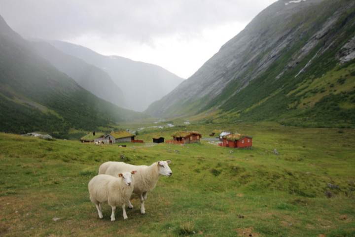 Andiamo avanti per la strada che va a Loen, praticamente è un passo di alta montagna, infatti, becchiamo un temporale con pioggia e grandine e qualche pecora in galleria, ma senza respiro arriviamo a Loen e di fronte c'è il ghiacciaio del Jostedalsbreen!