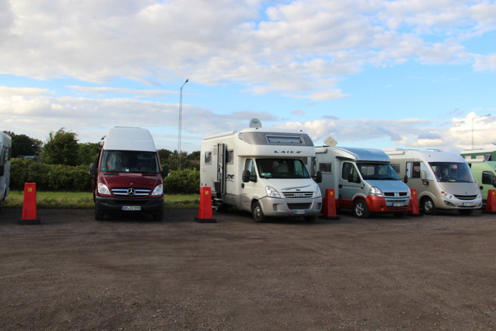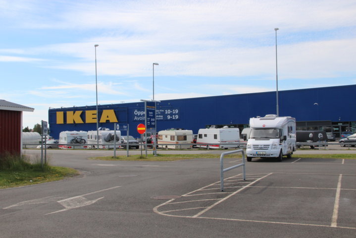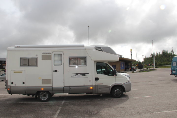 Ci fermiamo qualche decina di chilometri più avanti in un'area messa a disposizione dal concessionario FIAT/ALFA ROMEO/CARTHAGO, per 100 SEK compreso elettricità. All'entrata del parcheggio c'è un semplice cartello con una scatola di metallo dove lasciare la cifra richiesta.