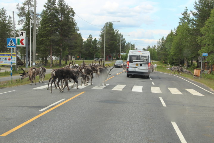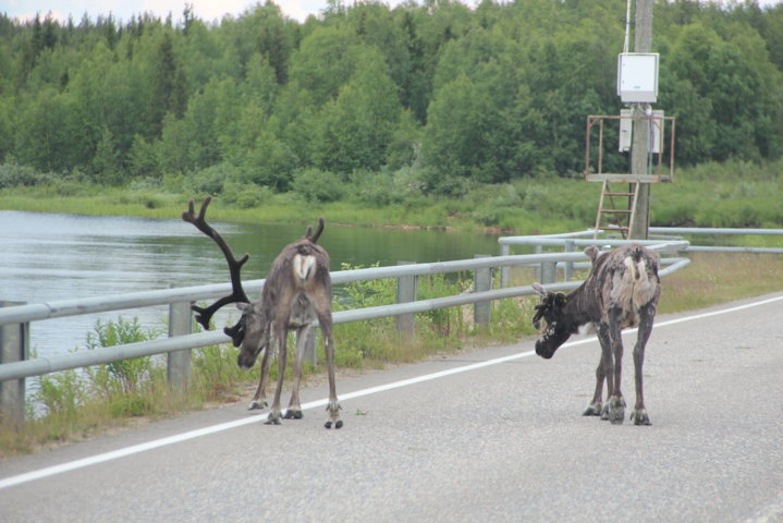 Prua verso Ivalo, dove ci fermiamo un po' prima, trovando un mini campeggio (sulla sx) Camping Autopaikka Sahko. Purtroppo non ho preso le coordinate, ma volendo andarci non potete fare a meno di vederlo. Lungo la strada innumerevoli molte troviamo le renne che se ne vanno a zonzo in mezzo alla strada.