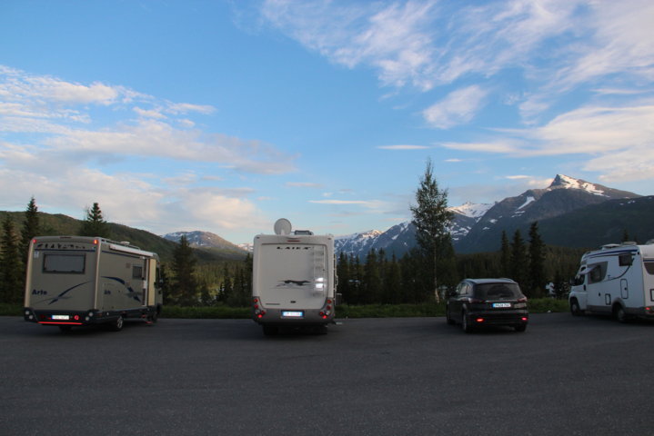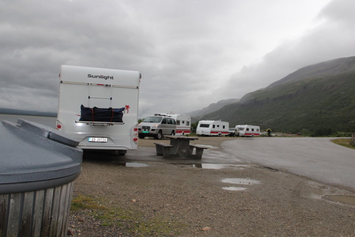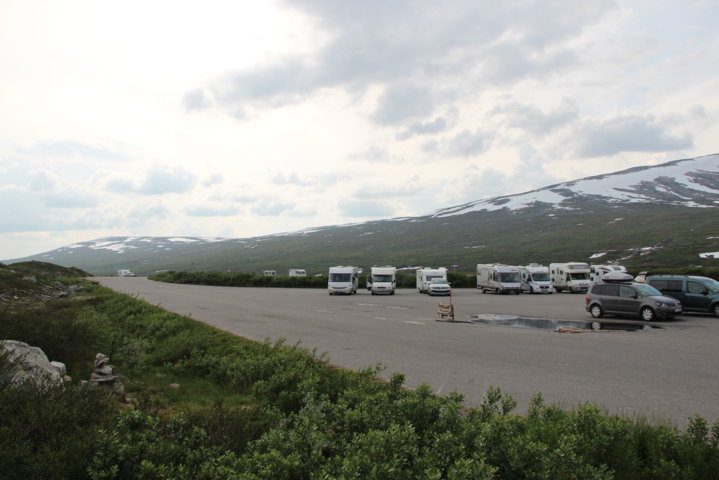 Arrivati a Geilo, vediamo che l'area di sosta non c'è più, è rimasto solo il carico e scarico. Visto che in zona non ci sono altri parcheggi, proseguiamo sempre lungo la nr 40 per Uvdal. Troviamo un parcheggio lungo la strada (località Vasstullan 1100) e dopo poco si fermano altri camper per la notte.