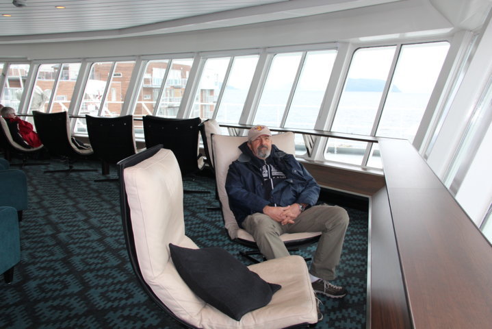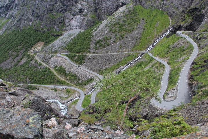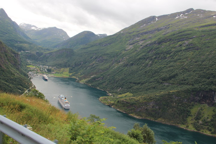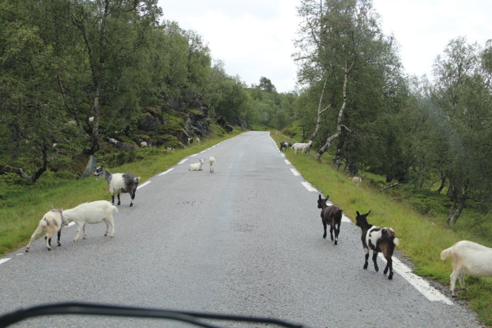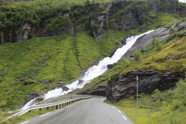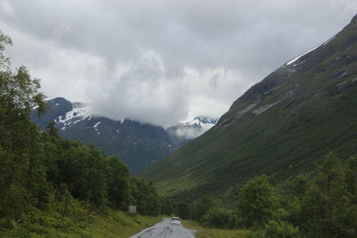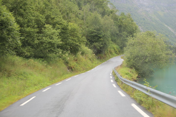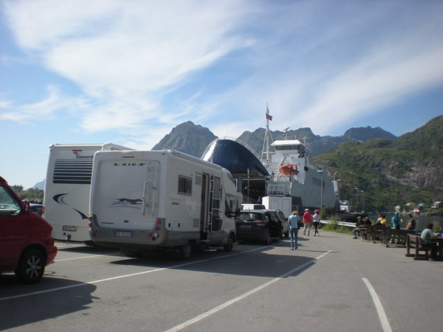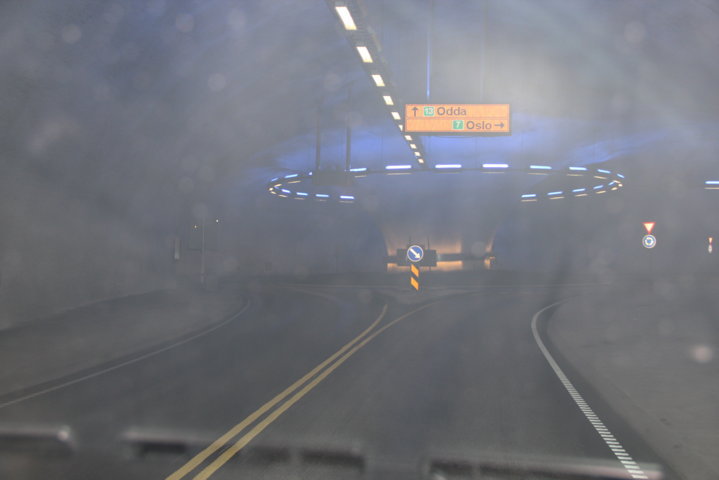Pensavamo di dover prendere il traghetto ma abbiamo scoperto che non c'è più. Hanno costruito delle gallerie che passano sotto al fiordo, e udite udite, per la prima volta nella mia vita ho visto le rotonde in galleria !! Si Si avete letto bene...si percorrono delle gallerie lunghissime, poi ad un certo punto sotto nel bel mezzo della caverna c'è la rotonda, e la galleria diventano due gallerie in sensi diversi !! Bellissimo !! Rotonde percorribili dagli autoarticolati, mica rotondine micio micio....eheheh Ah, sul soffitto delle rotonde c'è proiettato il cielo azzurro, così....per non farti sentire proprio sotto terra...!!!