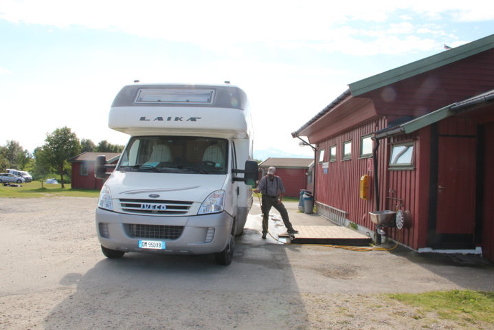 Si tratta in pratica di un grande piazzale circolare in terra battuta, con gli attacchi per la corrente, ed all'ingresso carico e scarico. C'è pure una grande sauna. I servizi (doccia e WC) sono super minimali, ma pulitissimi e profumati. La signora parla uno stentato inglese, ma sufficiente per dirci che in inverno scendono più di 3 mt di neve e che la temperatura arriva a -30/35° !!!!