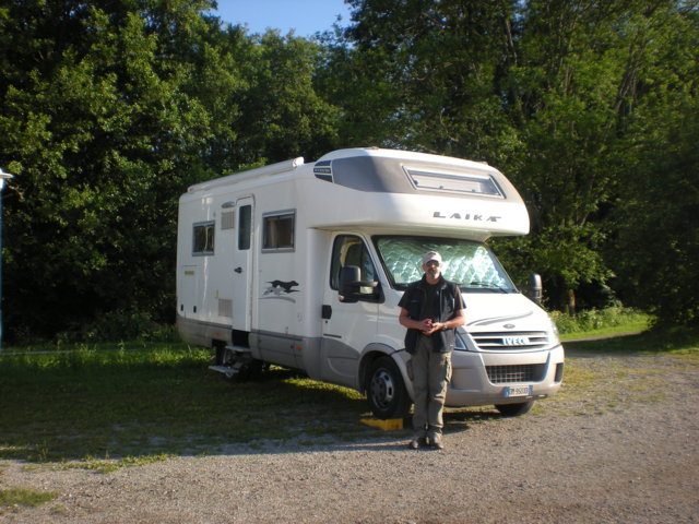 I ns vicini di piazzola sono tedeschi con un bellissimo Concorde Carisma con carrello al traino con sopra la vettura. Ad un certo punto vedo che inizia a montare un'antenna, ed allora scendo dal camper e gli chiedo se è un radioamatore (lo sono anche io dal 1994). La risposta è positiva ed allora incominciamo a parlare di radio ed antenne. Scende dal camper la moglie, che ci dice essere italiana, di Milano, nel frattempo arriva anche la mia ed iniziamo un curioso e simpatico scambio di informazioni in inglese con lui, in italiano con lei e tra me e mia moglie ed in tedesco tra loro......bellissimo !