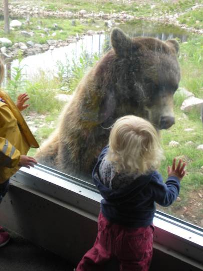 Gli orsi sono i più facili da vedere sia quelli bruni che gli orsi bianchi, anche perchè di orsi bruni ce ne sono parecchi mentre di orsi bianchi solo una coppia, ma hanno a disposizione due laghi dove fare il bagno ed un bel pezzo di foresta dove gironzolare.