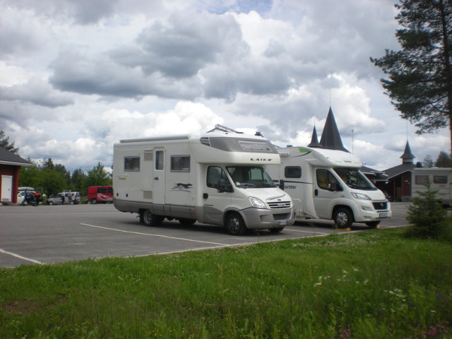 Ci fermiamo in un'area di sosta di un concessionario di roulotte e camper nella zona di Degernas N 63° 46' 14,52'' E 20° 15' 31,68''