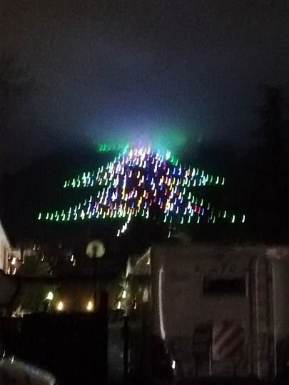 Verso le ore 13.30 termina la nostra visita e, considerata l'abbondante degustazione di cioccolato, decidiamo di fare rotta su Gubbio dove giungiamo verso le 14.30 sistemandoci in uno spazio riservato ai camper a poche centinaia di metri dal centro storico della cittadina. Pranziamo, con l'intento di recarci in centro dopo aver mangiato, ma ahimè il tempo non ci sostiene; infatti inizia a piovere e solo in serata riusciamo ad ammirare il magnifico albero e a fare una capatina in paese, ma non per molto perché ricomincia a piovere. Ma ciò non ci abbatte: torniamo al i nostri camper dove lo stare insieme ci fa trascorrere, comunque, una bellissima serata.
