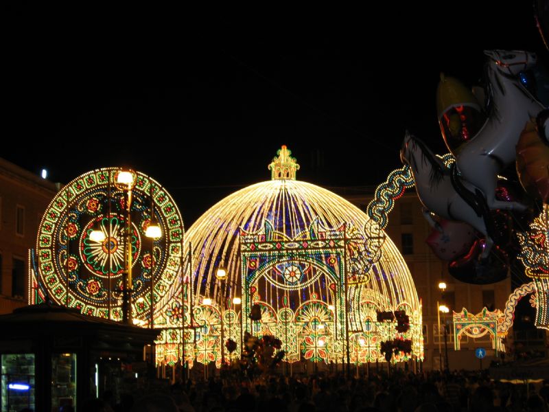 Martedì 25 agosto - dedichiamo la mattinata alle Grotte di Castellana. Il biglietto è abbastanza costoso ma, vale veramente la cifra spesa. Facciamo il percorso più lungo sino alla grotta bianca, è una piacevole passeggiata tra stalattiti e stalagmiti, la guida continua a dirci di fare attenzione perché il percorso a tratti è scivoloso ma non riesco a guardare a terra gli occhi vanno in alto ad osservare le meravigliose figure create dalla natura.Pomeriggio sosta vicino Torre Canne, qui c'è finalmente tanta sabbia, per bagno e sole.Ripartiamo per Ostuni, arrivati alla "città bianca" c'è la festa di San Oronzo e abbiamo difficoltà di parcheggio, una bambina si avvicina e ci dice di seguirla ad un parcheggio. Nel frattempo si avvicinano altri camperisti che ci dicono che anche loro sono lì, insomma, a sera abbiamo dormito con un altro camper dietro l'Ortofrutticolo Monopoli (sicuramente non troppo regolare) ma almeno sicuro.La piazza è illuminata con tanti archi di luci colorate che fanno da scenografia all'orchestra che suona la Turandot sul palco, c'è una moltitudine di gente che passeggia per le vie e all'angolo il barbecue sta grigliando i polpi da mettere nei panini.