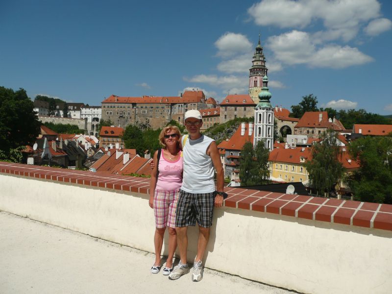 Stamane il tempo è splendido; c’è il sole ed in cielo non c’è una nuvola. Andiamo tutti a visitare la stupenda cittadina medievale di Cesky Krumlov, attraversata dalla Moldava, sulla quale scorrono lentamente centinaia di canoe e kayak. Dopo aver lasciato le auto in un parcheggio in vicinanza del fiume, iniziamo la visita lungo le vie ed i vicoli del centro storico, che si snoda attorno ad una bellissima ansa della Moldava. Saliti sulla torre del castello, dove si ha una vista stupenda della città, proseguiamo poi all’interno del castello, attraverso una galleria coperta e quindi saliamo lungo una panoramica stradina fino ai fantastici giardini all’italiana. Intanto la folla è aumentata; sono quasi le 13 quando riprendiamo la via del ritorno verso il campeggio.