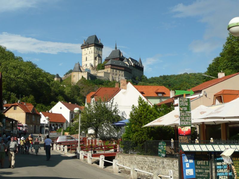 Alle 13 abbiamo riprendiamo il viaggio ed in circa un’ora raggiungiamo il camping Kotva, nel quartiere Branik, alla periferia est di Praha, dove troviamo un nostro amico che, in tenda, rimarrà con noi fino a ferragosto. Dopo esserci sistemati tutti senza problema e visto anche il deciso miglioramento del tempo, alle 16 partiamo in auto per la visita dello splendido castello di Karlstein, arroccato su di un dirupo nella valle del fiume Berounka, un affluente della Moldava, a circa