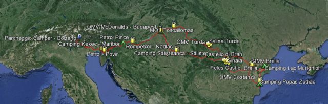 Vacanza itinerante verso la Romania attraversando Slovenia ed Ungheria. Il viaggio attraversa la Romania da nord a sud e viceversa toccando il Mar Nero, delta Danubio, Sinaia, Sighisoara, Turda.
