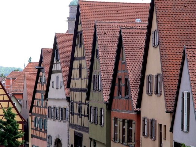 Al mattino successivo visitiamo la cittadina, il Municipio con la sua sala dorata, la Cattedrale romanica, la Maximilianstrasse che è molto caratteristica per i suoi vicoli e canali. Visitiamo anche il quartiere Residenziale Fuggerei: un complesso di case popolari più antico del mondo costruito dal ricco banchiere Jakob Fugger per i poveri della città, dicono che a tutt’oggi chi ci abita paga ottantotto centesimi di euro … però!!! poi c’è la Cattedrale Protestante. A pranzo, su consiglio di una ragazza dell’Ufficio Informazioni,ci fermiamo in un ristorante del centro storico e ovviamente i Peteroma si sentono Tedeschi e ordinano stinco di maiale servito con canederli di patate, insalata di crauti e ovviamente un bel boccale di birra, mentre i Mocla non si fidano e optano per una cotoletta alla milanese, patate fritte e la cosa più orribile “la coca cola”! Gironzoliamo poiché ancora ci sono molti negozi e i nostri ragazzi se li fanno tutti, Claudia riesce addirittura a trovare uno zaino per il nuovo anno scolastico è molto soddisfatta del suo acquisto! La commessa la informa che ci sono due anni di garanzia, speriamo che non si rompa altrimenti Gianni sarà costretto a tornare in Germania! Si è fatta l’ora e si ritorna in camper e partiamo per Dinkelsbühl. Lungo la strada ci sono molte fattorie tutte ordinate che hanno facciate con affreschi, giardini curatissimi con fiori in tinta con i colori delle abitazioni. Arrivati a Dinkelsbühl sostiamo al DCC Campingpark Romantische Strasse, dove ci sono piazzole con erba ben curate e anche un laghetto che dicono sia balneabile ma sinceramente l’acqua era marrone e il bagnetto lo abbiamo lasciato fare ai numerosi tedeschi, olandesi e francesi vacanzieri …. noi non abbiamo trovato il coraggio di entrare! Durante la notte c’è stato un forte temporale con grandine e tuoni e già pensavamo di doverci fermare un giorno, invece al mattino c’era un cielo azzurro e pulito e un sole splendente.Tiriamo giù le bici posizioniamo Teo nel cestino e ci avviamo alla scoperta di questa deliziosa cittadina. Varcata la porta della città ci appare uno scenario incantevole con fiori dai mille colori ovunque. Visitiamo la laukt gerg, Deutsche Haus un edificio a graticcio dal tetto a timpano e la facciata dipinta e scolpita, e percorriamo il cammino di ronda lungo le mura di cinta della città, questo cammino si può fare con una sentinella notturna da prenotare all’Ufficio Turistico ma in questo periodo è stata sospesa … pazienza! Entriamo in un negozietto che vendeva orologi a cuccù di ogni tipo … che belli ma che prezzi! Optiamo per qualcosa di più economico.Poi mentre eravamo fermi in piazza per decidere dove pranzare Pietro nota con sorpresa che sul tetto di un edificio c’è il nido con due cicogne … che spettacolo!Ovviamente le abbiamo fotografate! Troviamo un ristorante italiano (i proprietari sono di Salerno). Mangiamo a menù fisso e molto bene, ottima scelta!Gironzoliamo ancora un po’ nei parchi dove ci sono molti alberi di mele, pere e susine