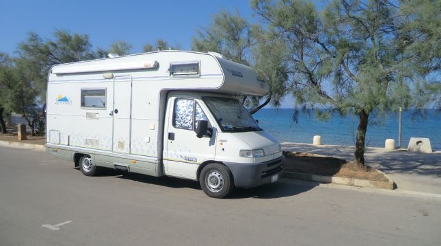 27.06 Alle 8.30 ci rimettiamo in marcia e verso le 15 arriviamo a Ostuni. Sostiamo in un parcheggio sul mare a Diana Marina, vento forte e mare mosso, ma va bene tutto, siamo stanchi. La sera ci spostiamo col camper per visitare la cittadina di Ostuni. Parcheggiamo in quella che viene segnalata come un'area di sosta con C.S., ma che in relatà sembra il cortile di un'abitazione. Ci prende 5 euro e c'è solo la possibilità di caricare acqua, mentre per lo scarico il gestore ci consiglia di farlo con discrezione nel prato di fronte !?! (anche no!). La cittadina è bellissima, merita. Ritorniamo al nostro parcheggio in riva al mare per pernottare. Dormiamo come sassi cullati dal rumore del mare.