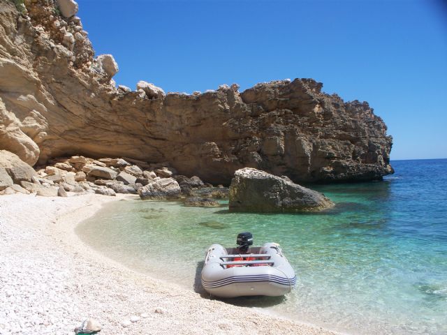 Domenica 23 è uscito il maestrale e noi rimettiamo tutto in camper e partiamo alla volta di Cala Gonone. Ci fermiamo poco dopo il paese dove troviamo anche altri camper. Scendiamo alla spiaggia, sassosa e ombreggiata. Non ci azzardiamo a fare il bagno in quanto il mare è troppo mosso per noi montanari. Non ci piace molto, in paese l'area camper è troppo scomoda per il gommone e così ripartiamo verso Baunei. Ci piacerebbe vedere il villaggio nuragico di Monte Tiscali ma la strada ci sembra troppo stretta il per il camper e non la imbocchiamo.